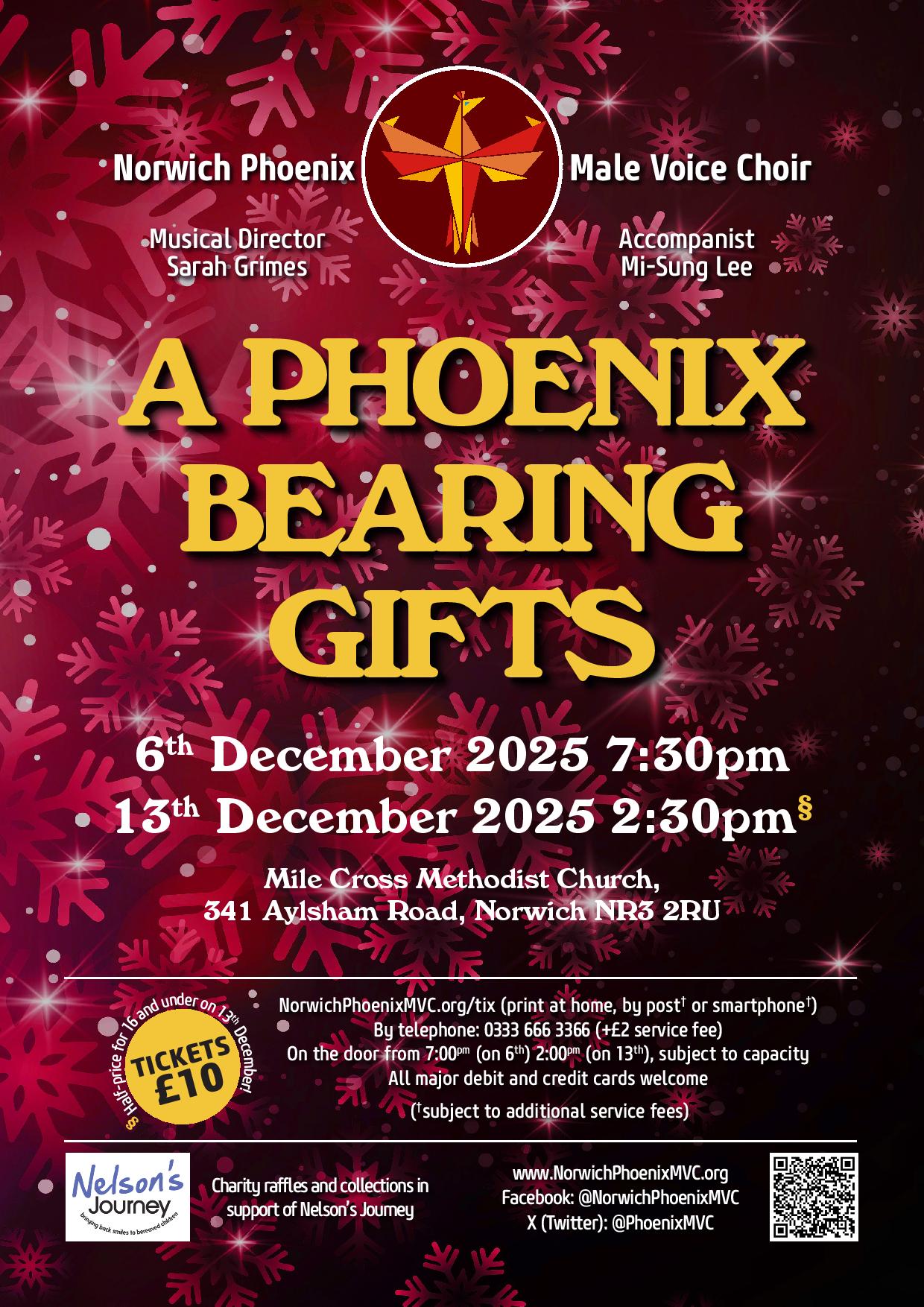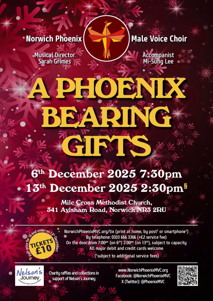 ‘A Phoenix Bearing Gifts’ is the traditional ‘home base’ festive offering for 2025 by the singing men of Norwich’s Phoenix Male Voice Choir, featuring seasonal songs and carols to celebrate Christmas.