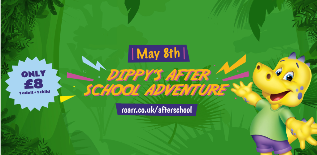 Looking for a fun way to keep the kids entertained after school? Join ROARR! on Friday 8th May at 5:00 PM for Dippy’s After School Adventure – a lively two-hour event packed with games, dancing, and indoor play.