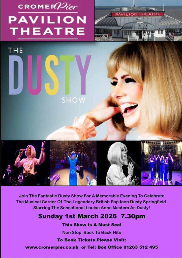 The Dusty Show starring Louise Anne Masters accompanied by The Echoes Live band and The Breakaway Singers bring you an evening of celebrating the life and music career of the legendary Dusty Springfield, back to back hits spanning from early pop to the Memphis era.
