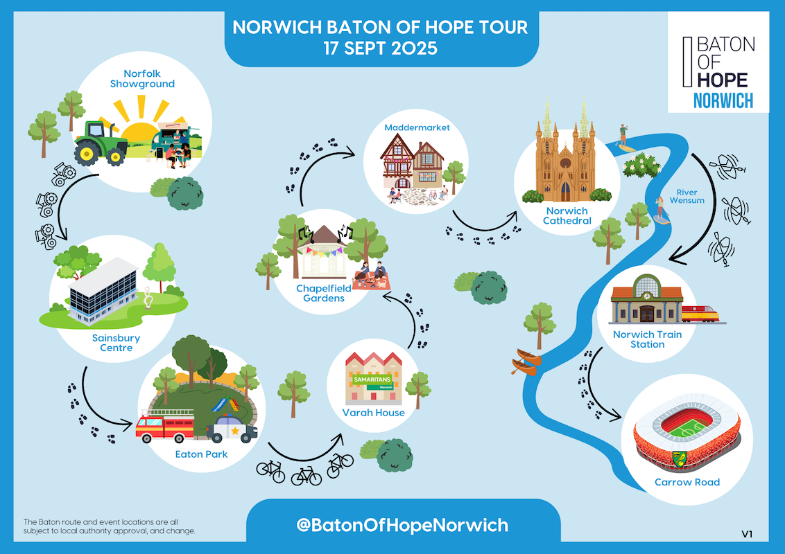Norwich will take centre stage in a powerful national campaign to confront the stigma surrounding suicide when the Baton of Hope tour arrives in the city this September. On Wednesday, 17 September, the symbolic baton—created to inspire hope and drive action in suicide prevention—will be carried through Norwich for the first time as part of a UK-wide relay.